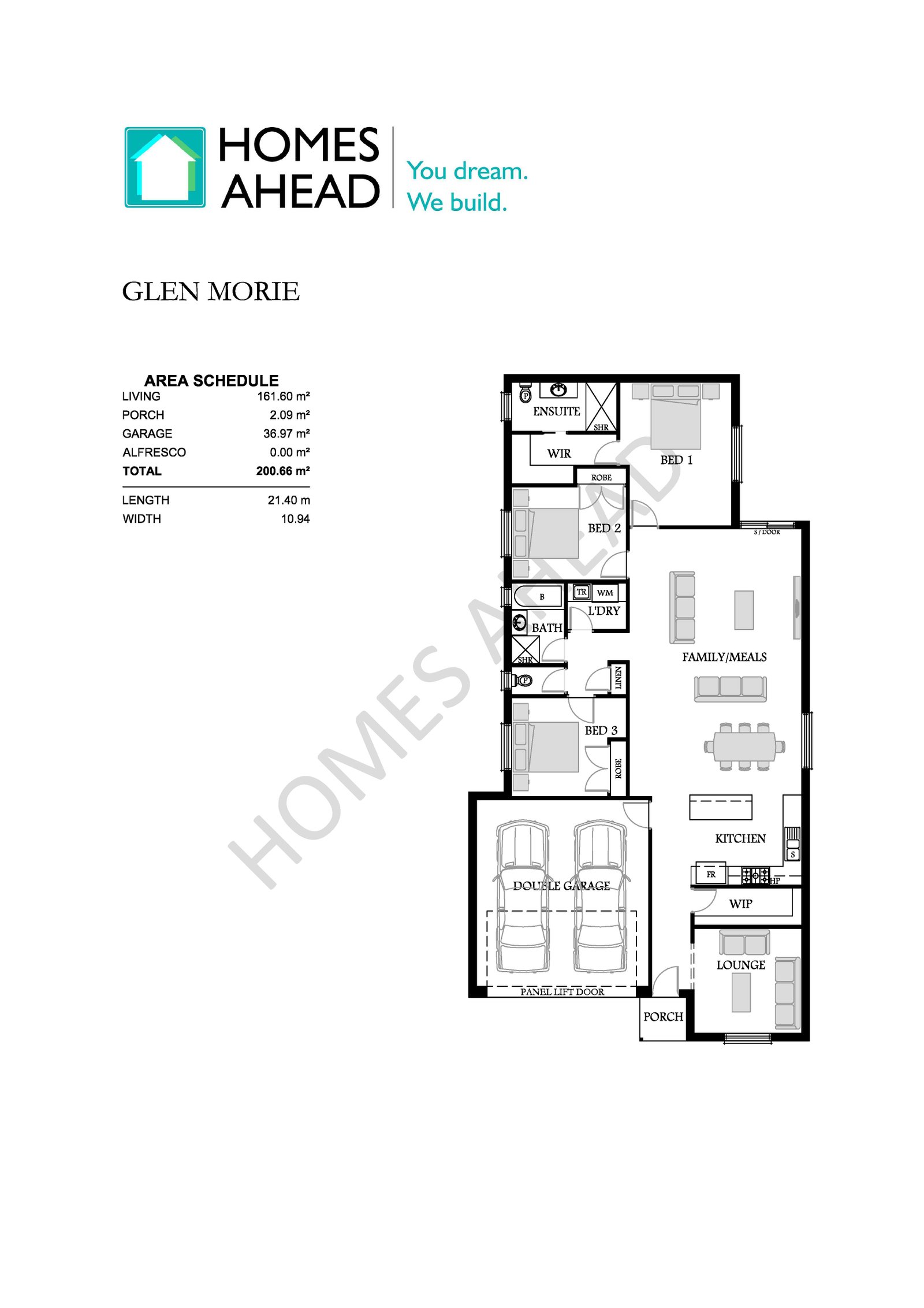 Price and details are based on the base facade floor plan (illustrated). All photos and illustrations are for representative purposes only and should only be used as a guide. Floor plans and specifications may be varied by Homes Ahead without notice, the dimensions are diagrammatic only and a Building Contract with final drawings will display correct dimensions and detail. All designs are the property of Homes Ahead and must not be used, reproduced, copied or varied, wholly or in part without written permission from an authorized Homes Ahead representative.